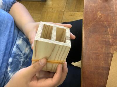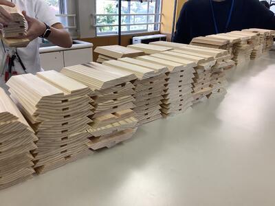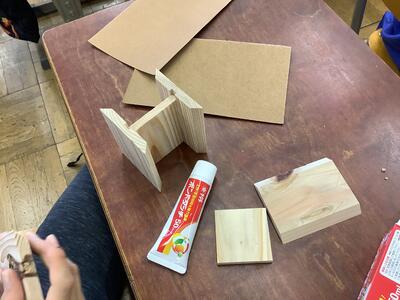 木材コーディネーターをゲスト講師としてお呼びして、森林の話を聞いた後、木工細工を行いました。