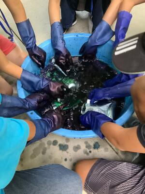 自然の家のスタッフに挨拶をした後、藍染体験を行いまいた。