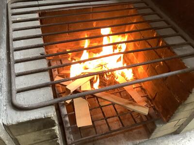 アマゴを捕まえた人から、炊事場に移動して、塩焼きにしました。