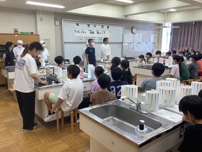 今日は5年生が五つの味「塩味」、「酸味」、「苦味」、「甘味」に、第五の味覚