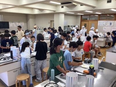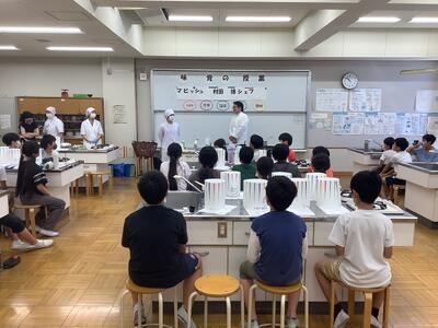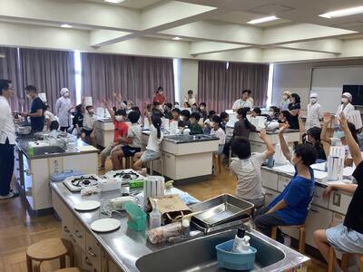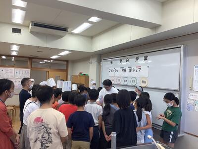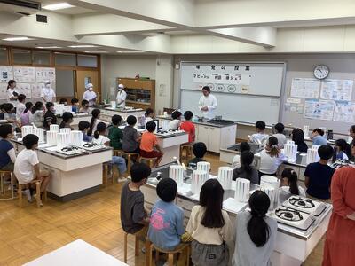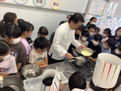 子どもたちも楽しそうに味わい、実演調理を見学し、実食しました。