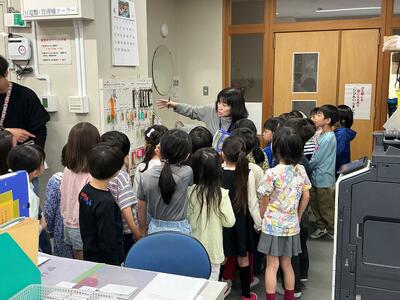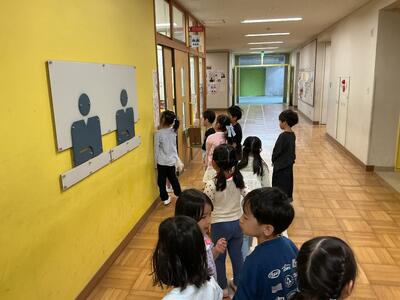 1年生の校内探検が始まりましたよ 投稿: 編集長 (04/17) カテゴリー: 今日の出来事 新入生恒例の学校めぐりがはじまりました! 大きな声で、『○年○組の⬜︎⬜︎です。✖️✖️を取りにきました』とはっきりとと 言うことができていましたよ。 どの子もハキハキと言えていて素晴らしかったよ。 どんどん小学校生活に慣れていこうね。 Tweet -
